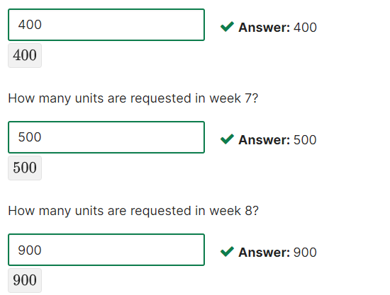 - There are currently (week 0) 400 units on hand.