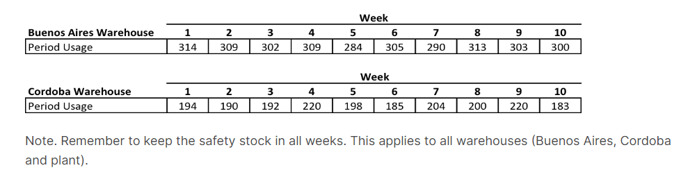 Martin Riquelme, the company’s distribution planning manager has been thinking to acquire a DRP system to plan the shipments from the plant warehouse to the regional warehouses. Before committing to his software provider, he asked you to evaluate the results for the next 10 weeks. He has collected the following data: